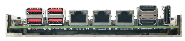 | I/O Interface | 1 x Internal RS-232: 2x5 pin, P=2.0 2 x Internal RS-232/422/485: 2x5 pin, P=2.00 ,RS-485 support AFC 2 x Internal USB 2.0: 2x4 pin, P=2.00 1 x DIO: 12-bit digital I/O (2x7 pin, P=2.0) 4 x External USB 3.2 Gen2x1: 10Gb/s |