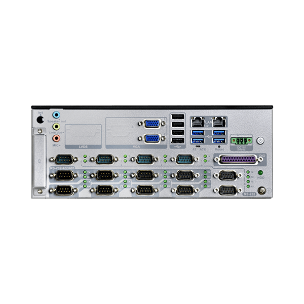 | I/O Ports | ●4 x USB 3.0 ●4 x USB 2.0 ●Ethernet:2 x RJ-45 PCIe GbE by Intel® I211 controller ●COM Port: 6 x RS-232 (DB-9) 8 x RS-232/422/485 ports with automatic flow control (DB-9) ●1 x 24-bit digital I/O (12-bit input/12-bit output) ●Audio: 1 x Mic in, 1 x Speaker out, 1 x Line out ●Display:2 x VGA |
